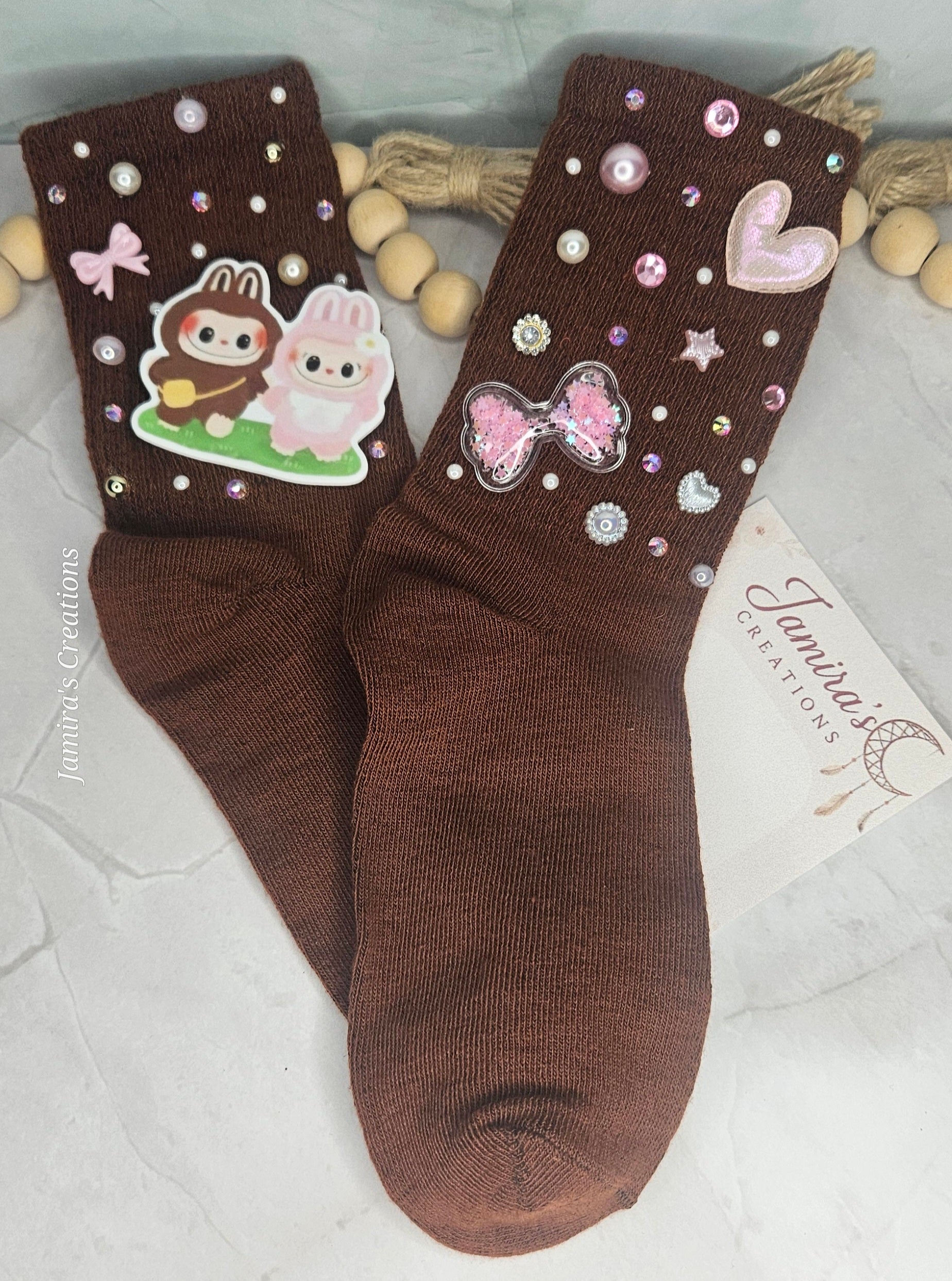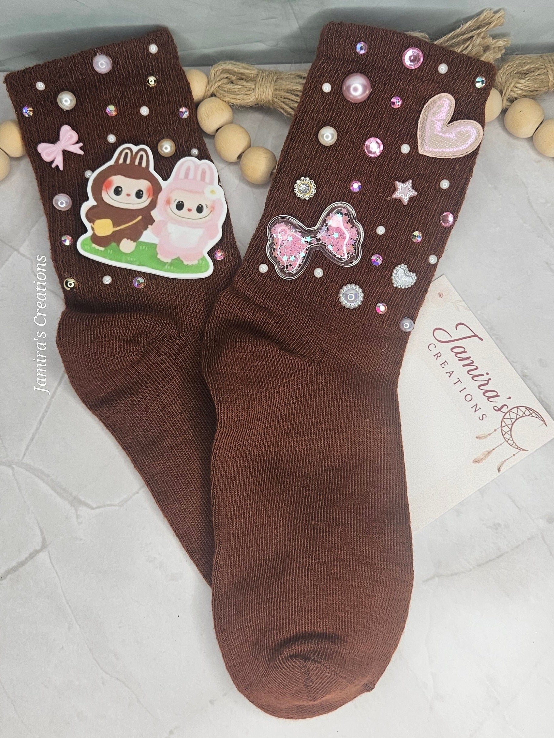 Step into a fantasy world with these brown socks inspired by the magical Labubu.