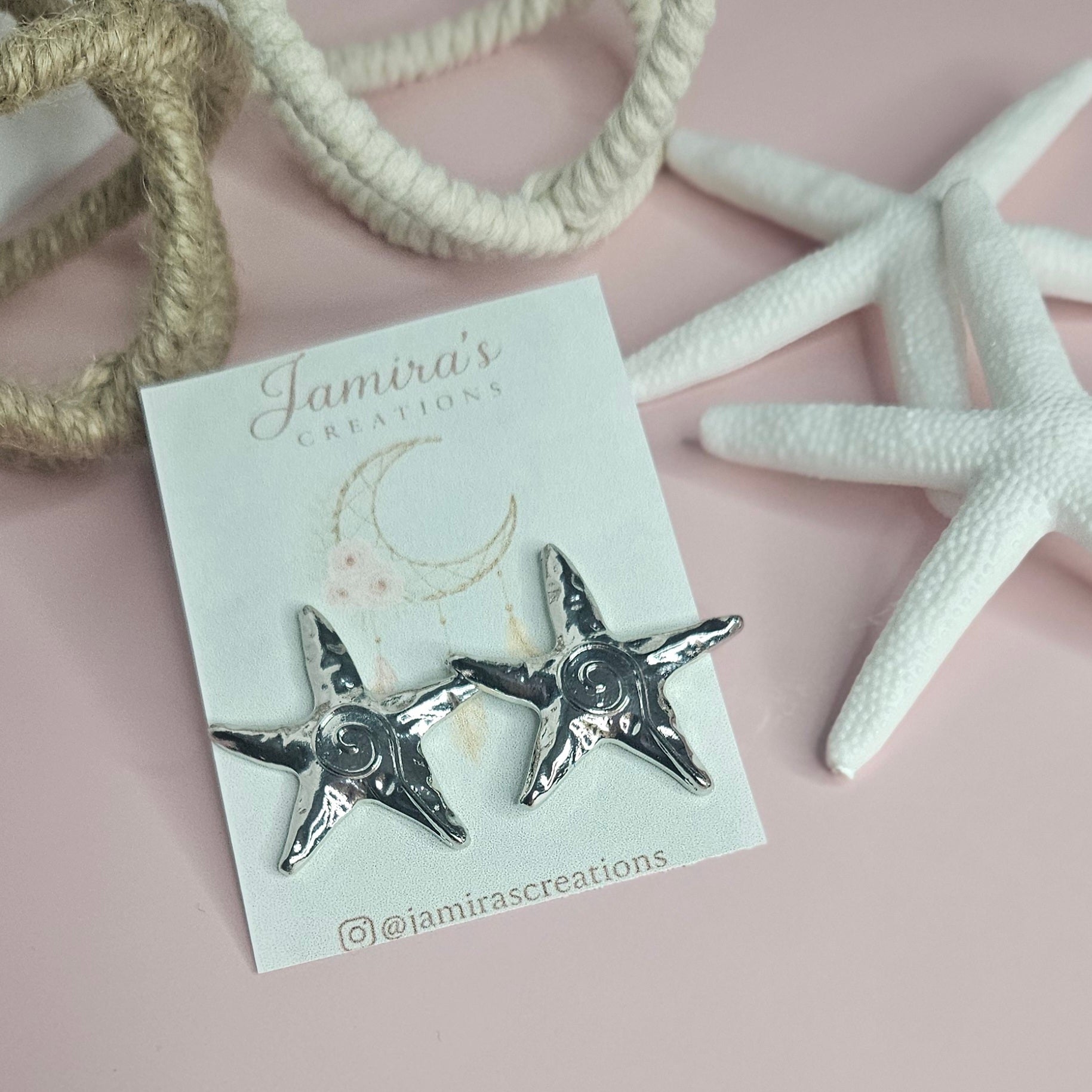 Silver Starfish Earrings/ Aretes Estrella de Mar Plateada