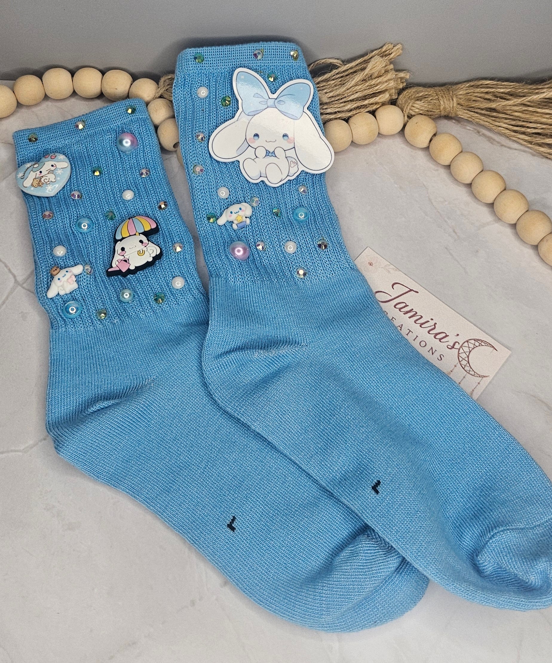 "These decorated socks are made to stand out with style and personality. Featuring unique designs, charming colors, and a handmade touch, they’re perfect for adding joy and cuteness to any outfit. Cozy, comfy, and absolutely adorable!"