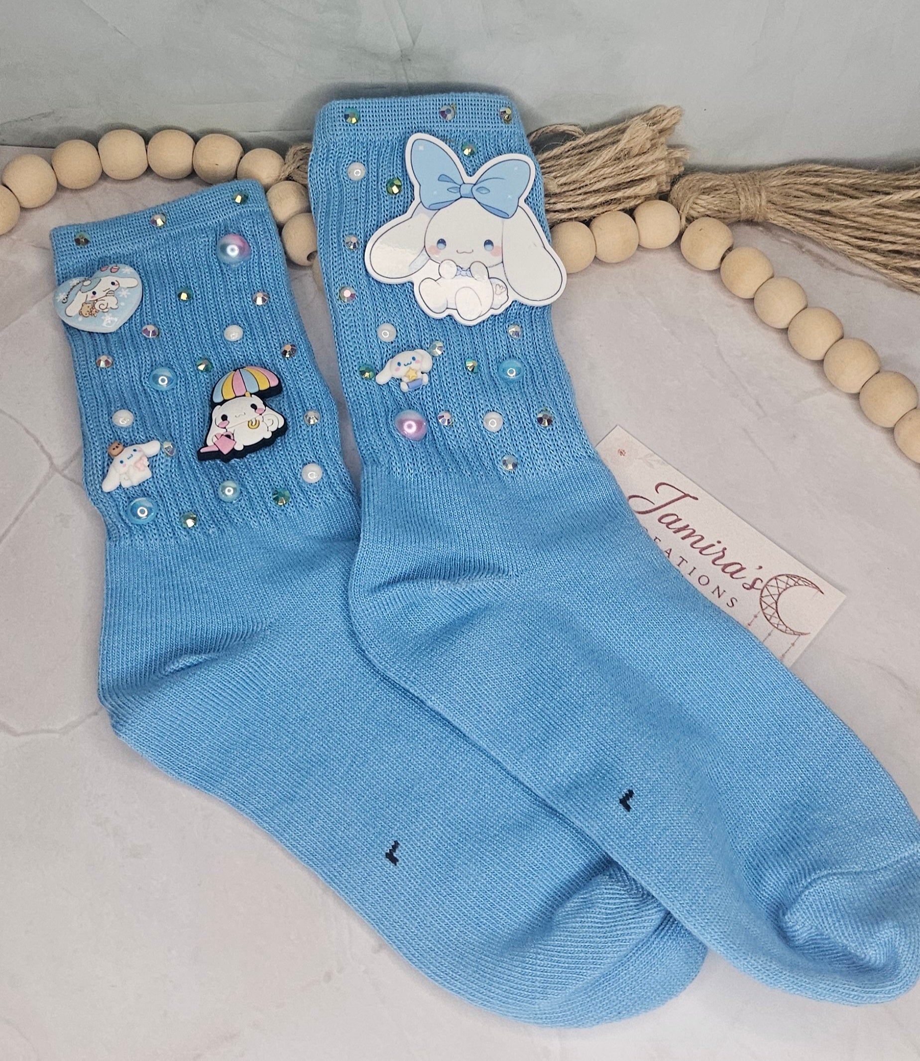 Light blue socks with sweet Cinnamoroll designs—perfect for those who dream in pastel.